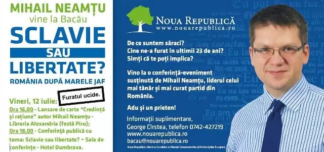 Mânjii politicii băcăuane s-au apucat de zburdat pe străzile Bacăului. Pe după blocurile gri, pe lângă garaje, cu ceaiul într-o mână, cu pliantul sau ziarul în cealaltă, dar cu morga de politician serios și important, de parcă tot viitorul țării stă pe umerii lor, Mircea Sprianu, în Colegiul 1, și Cosmin Necula, în Colegiul 2, stau de vorbă cu Măria Sa Votantu’. Seniorii fac întâlniri în sediile de campanie, în intreprinderi sau săli de clase închiriate. Acolo e cald. În stradă, la frig, la munca de jos, i-au trimis pe tineri. Să vadă și ei cum e cu munca de partid, să le iasă pe nas :).