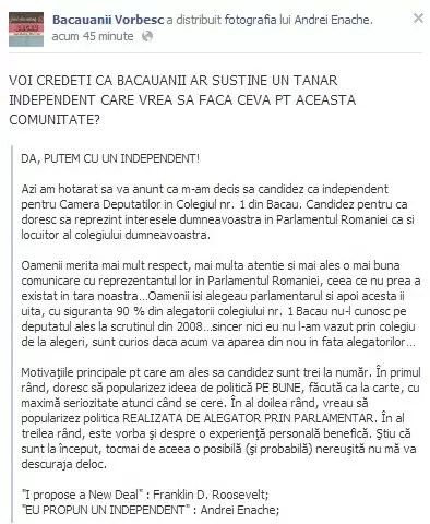 Politicienii băcăuani s-au prins, după uninominalul din 2008, cum stă treaba cu sistemul electoral în vigoare. Că în politică stai în pat cu dușmanul pare un truism, însă în campania de la parlamentare e slogan. În 2008 Avram a stat acasă deși își câștigase colegiul. A plecat Antochi, colegul său de alianță. A avut 400 de voturi în plus. Cam la fel a pățit Drăgănuță, care deși a câștigat în Colegiul 1, în Parlament a plecat Gherasim deși pierduse bătălia din Colegiul 7. Simptomatic este cazul lui Nistor care a ajuns senator pe un rest de voturi (13.697), deși înaintea sa erau Valentin Nedeff (19.393) și Doru Simovici (18.382). Așa că acum inamici nu sunt doar contracandidații, ci chiar colegii de partid.